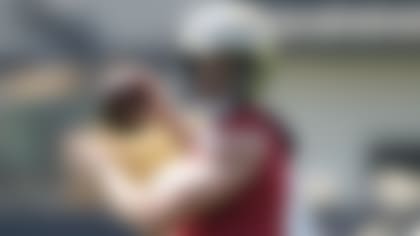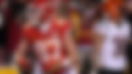 CMC poses with the football for a two-point conversion