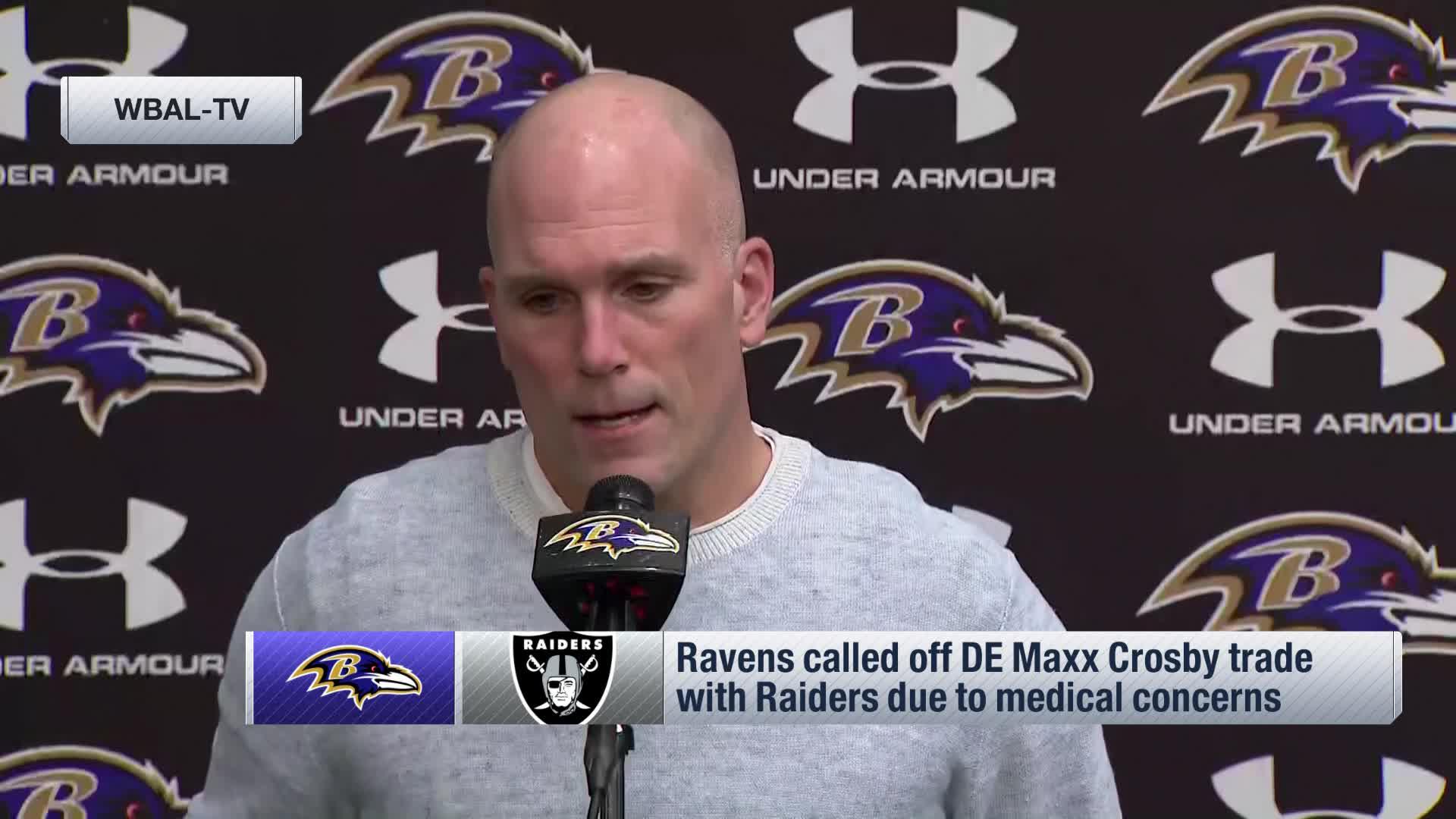Ravens Executive VP and GM Eric DeCosta addresses the media amid Maxx Crosby trade fallout