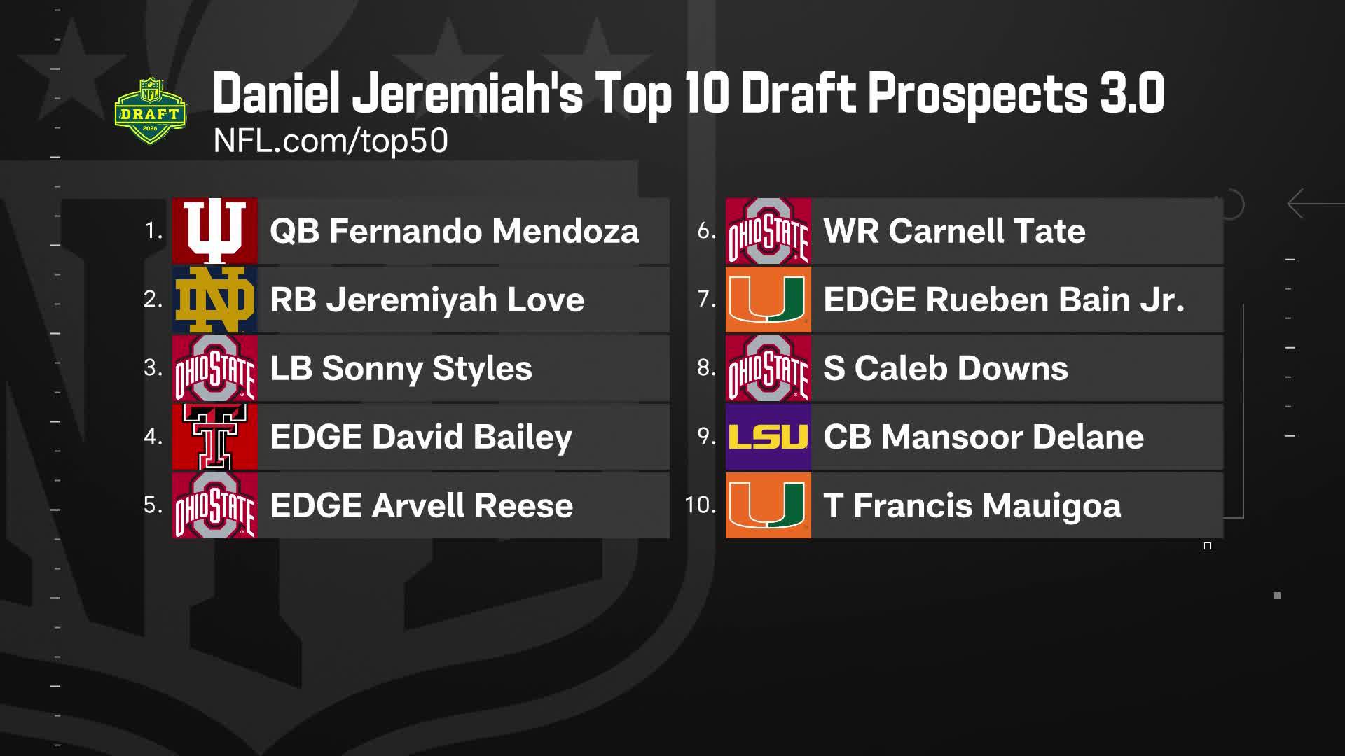 Daniel Jeremiah's top 10 2026 draft prospects 3.0 | 'The Insiders