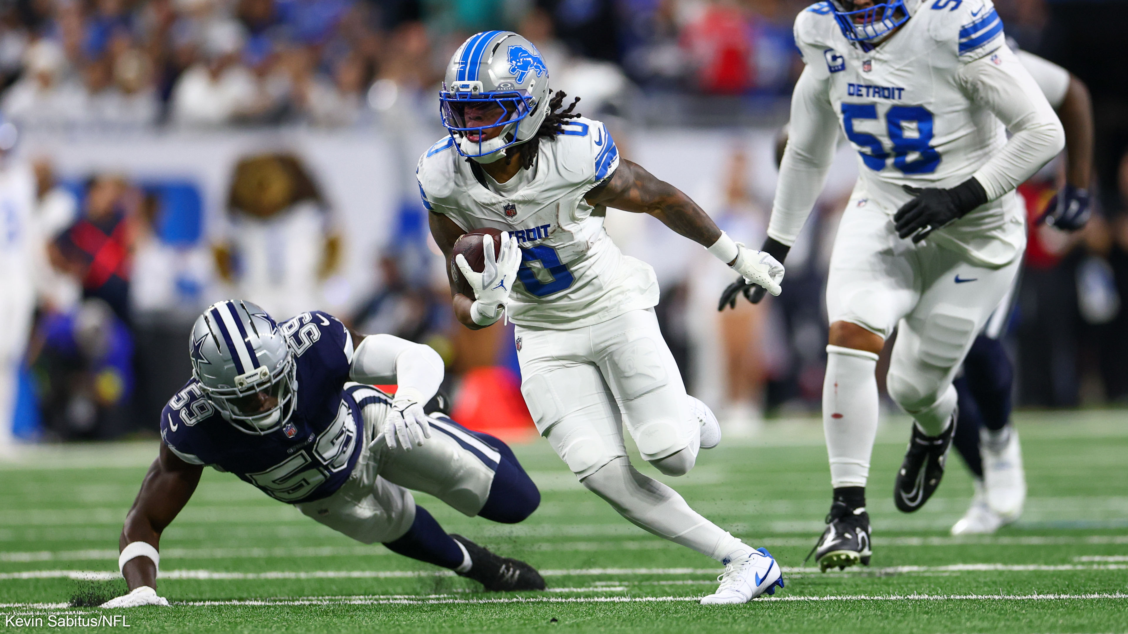 Jahmyr Gibbs jogs into the end zone for his third TD of 'TNF' vs. Cowboys