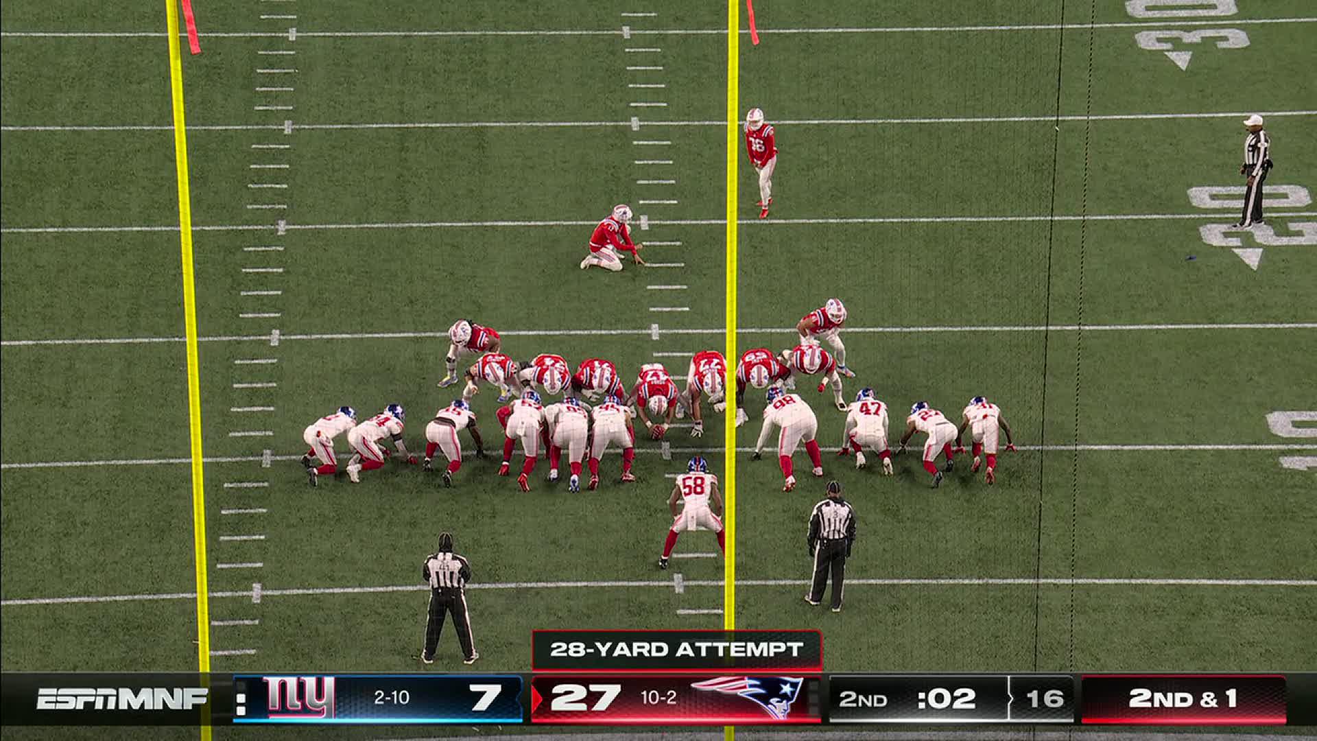 Borregales' funky 23-yard FG extends Pats' lead to 33-15 vs. Giants