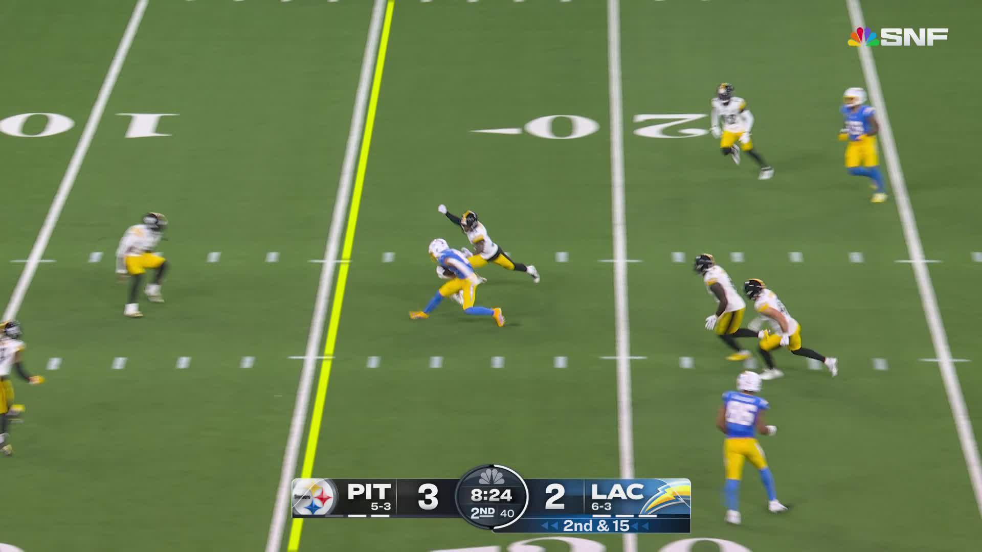 Jaylen Warren wiggles through the Chargers defense for a huge YAC play into the red zone