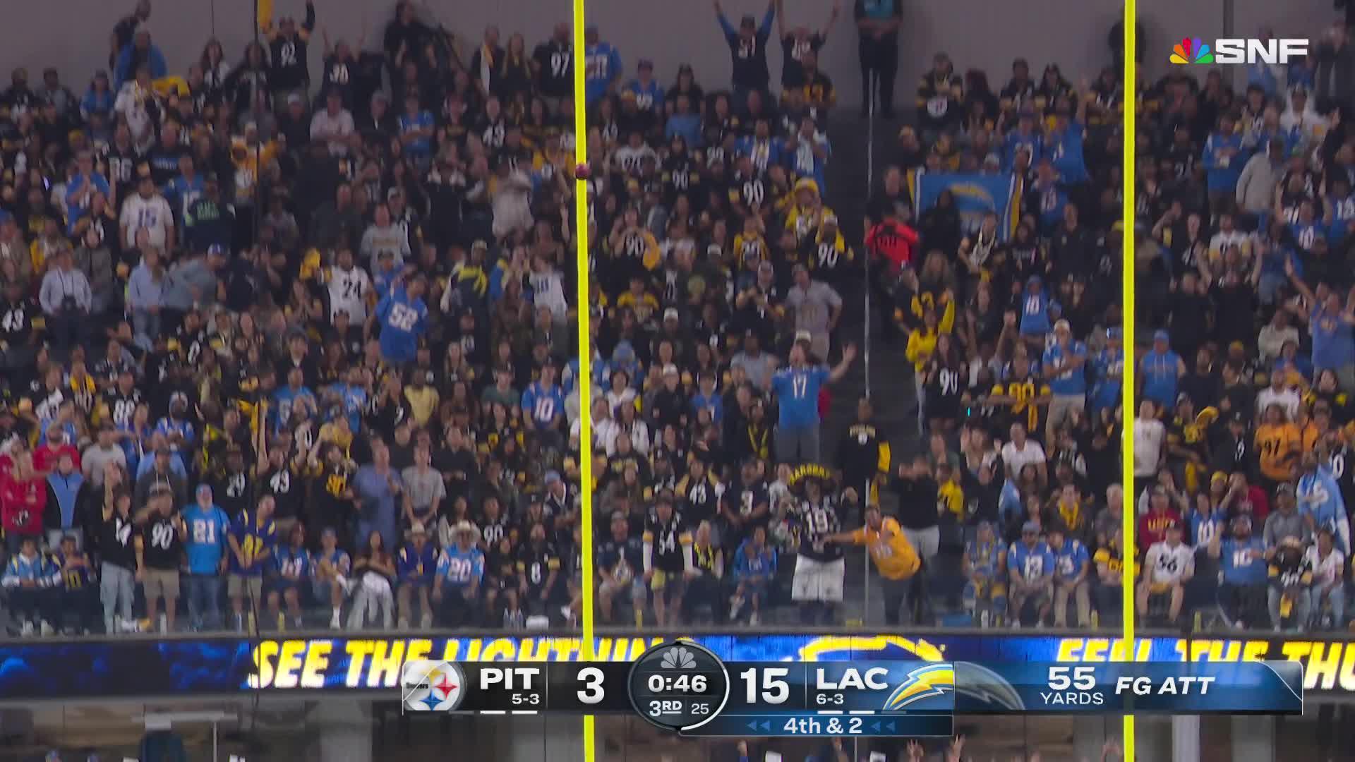Ke'Shawn Williams' muffed punt sets up Chargers at the Steelers 21-yard line