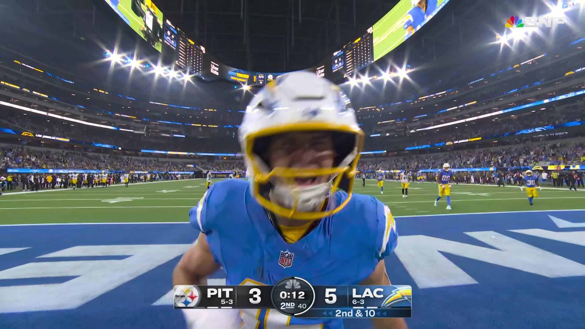 Herbert zips 15-yard TD pass to McConkey on 'double wiggle' route vs. Steelers