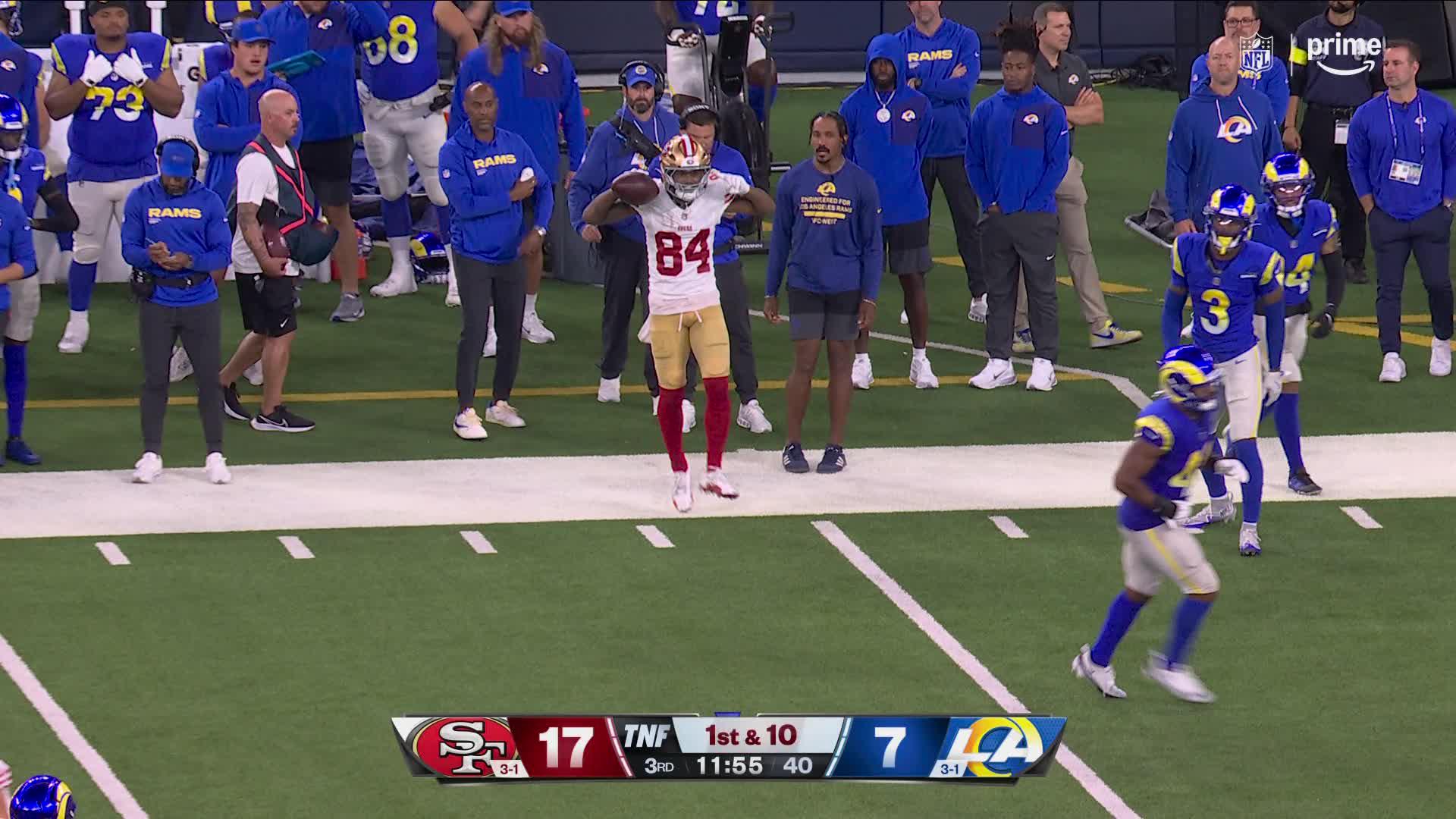 Can't-Miss Play: Pearsall's one-handed catch caps off Purdy's 32-yard pass