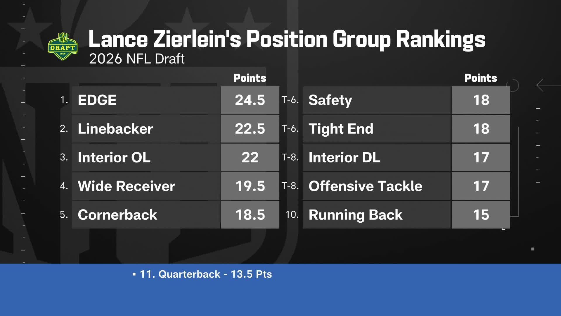 Lance Zierlein's 2026 NFL Draft position group rankings | 'The Insiders'