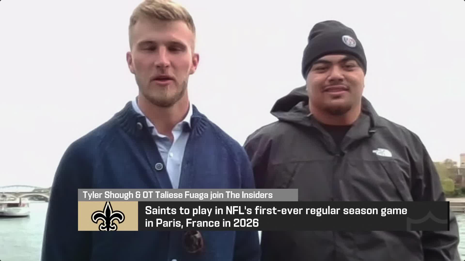 Tyler Shough and Taliese Fuaga join 'The Insiders' for an exclusive interview to discuss the Saints playing in France in 2026