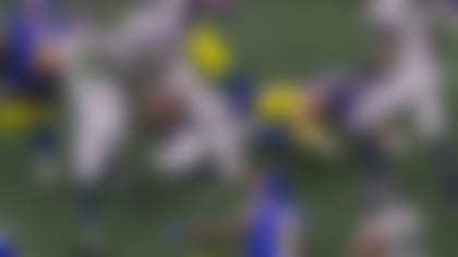 Los Angeles Rams quarterback Jared Goff delivers a gorgeous 39-yard dime to Rams tight end Tyler Higbee in stride.